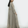 Elevate your style with our Chiffon Frock, featuring Zari, Sequence Nug, and Mirror embellishments. The straight-waisted design effortlessly pairs with a full Ghair border, creating a modern and graceful silhouette. The Chiffon Dupatta, measuring 2.5 yards with a four-side border and delicate with Dubble lace, adds an extra layer of charm. Complete your ensemble with the Banarsi Straight trousers, offering a perfect balance of comfort and style.