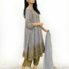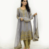 Indulge in sophistication with our Chiffon Frock, embellished with Zari, Sequence, Nug, and Mirror work. The straight-waisted design harmonizes with a full Ghair border, creating a modern yet silhouette. The Chaiffon Dupatta, spanning 2.5 yards with a four-side border adorned with Lace, adds an extra layer of grace. Complete your ensemble with the Banarsi Straight Shalwar, offering the perfect blend of comfort and style.