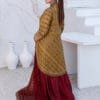 Indulge in elegance with our Exquisite Frock Set. Meticulously designed, this ensemble features a harmonious blend of Sequence, Thread, Zari, Dori, Nug, and Mirror work that adds a touch of opulence. The straight-waisted shirt boasts a full Ghair border, while the Banarsi Dupatta with 2.5 yards length showcases a 4-side border, completing the ensemble with grace. Accompanied by a plain trouser, this set embodies timeless charm.