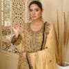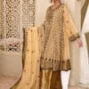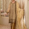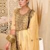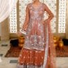 Drape yourself in sheer elegance with our Chiffon Frock featuring Zari Sequence and Nug Mirror work. The straight waistline ensures a comfortable fit, and the full Ghair Frock border adds an extra touch of grace. The ensemble is completed with a 2.5-yard Chiffon Dupatta featuring a four-side border adorned with intricate Kiran Lace. Complementing this gorgeous outfit is a pair of Banarsi Plazo trousers, making it perfect for special occasions and celebrations.