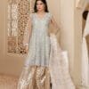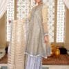 Experience exquisite beauty in our Exquisite Organza Frock, adorned with intricate Dori, Sequence, and Nug embellishments. The straight waist provides a graceful fit, while the full Ghair border adds an elegant touch. The Chiffon Dupatta boasts a 2.5-yard length and a 4-side border with Dori piping, creating a sophisticated look. Pair it with Crush trousers for a complete ensemble that exudes charm.