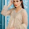 Step into elegance with our Elegant Frock Net Set. Carefully designed, this ensemble features delicate Dori, Nug, Mirror, and Tussle work that adds a touch of refinement. The straight-waisted frock’s allure is heightened by a full Ghair border, while the Net Dupatta with 2.5 yards length showcases a 4-side border, completing the ensemble with grace. Pair it with a Lehenga trouser for a complete look.