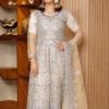 Experience elegance at its best with our Elegant Frock Net Set. Meticulously designed, this ensemble features delicate Dori, Zari, Sequence, Nug, and Mirror work that adds a touch of refinement. The full Ghair border of the frock enhances its allure, while the Net Dupatta with 2.5 yards length showcases a 4-side border, completing the ensemble with grace. Pair it with plain trousers for a timeless and sophisticated look.